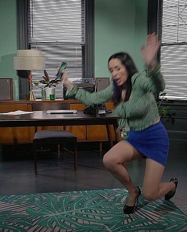 Tina is desperate to pee but is trying to finish up her work for the day so she can just go to the bathroom on her way out of the office. It's getting harder and harder to hold it and she's afraid she might have an 'accident' but finally she finishes and is hurrying out the door when she trips on the rug and hurts her ankle. It's pretty bad and she thinks it might be broken but before her assistant calls an ambulance she has to ask him for a humiliating favor, to help her pee so she doesn't wet herself in the ambulance.