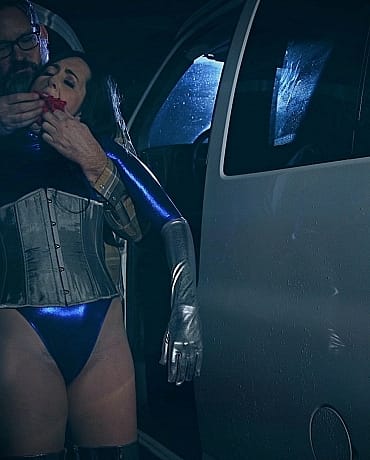 Episode 3 Justice is driving with Rapture and Scarlett still tied up with vibrators in the back of the van. Justice isn’t sure where to take the two women. Since Siren and Rapture both used to be cops, she can’t trust the police. Just then, Justice notices a car swerving in her rearview mirror, like someone is trying to chase her. She grips the steering wheel and a look of concern comes over her face. Suddenly Justice sees headlights coming from the side but before she can react, the car slams into the side of the van. A man walks up to the wrecked van and opens the door lifting Justice out of the front seat. He then stuffs her mouth with panties and wraps them in with several rounds of duct tape. He cuffs her hands behind her back and carries her to the back of the van. Justice, Rapture and Scarlett are strictly tied to chairs now. They’re cleave gagged with mouth packing and they all have vibrators tied to their pussies. As they struggle, someone plugs in their vibrators one at a time which causes each woman to panic. Justices notes in her head that she has no idea where they are or who has captured them. She tries to undo her ropes but thinks whoever tied them up did too good a job and she’s already starting to be distracted by the vibrator. She describes trying to fight the pleasure because she has to get herself and Rapture to safety. As she tries to finish her thought, she trails off and succumbs to the vibrator. Same with Rapture and Scarlett and they all continue to have orgasm after bound orgasm. Will Justice prevail???