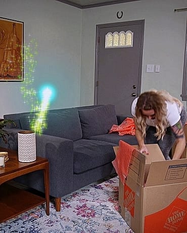 Jamie is unpacking boxes and moving into her new house when she is interrupted by her nosy new neighbor, Dixie, who informs her that a tragedy befell the previous owners of the house and that's why she got it for a steal. She warns Jamie that the house might very well be haunted, but Jamie just laughs and tells her she doesn't believe in ghosts before returning to her unpacking. Suddenly a strange orb floats into the room and begins levitating around Jamie. It's the ghost of the houses previous resident and when he possesses Jamie's body he becomes infatuated in groping her big boobs and ass before working his way down to her pussy to feel what masturbation is like for a woman.