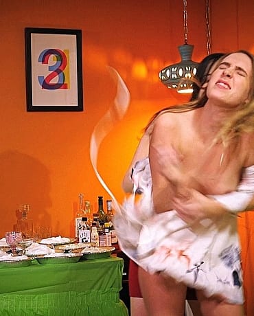 Dixie is working with her new assistant, Ashley, in preparation for her big Gala to celebrate her priceless heirlooms. She's telling her about what a huge disaster her last Gala was because her former assistant, Cadence, got into a pie fight with her twin, Trixie, and they made a huge mess out of the whole event. Dixie tells Ashley that this Gala needs to go smoothly because the last one was humiliating for her. Out of nowhere, Cadence comes in to apologize and ask for her job back. Dixie angrily reminds her of what a disaster she made of her last Gala and demands she leave her office, telling her that she's already replaced her with Ashley who is doing a much better job than she ever did. Later that night, Cadence shows up at the Gala uninvited and intent on making a scene if Dixie won't acknowledge that the mess of the last Gala was Trixie's fault and not Cadence. Dixie starts yelling at Cadence for daring to show her face at the Gala and calls for security when Ashley attempts to deescalate the situation by leading Cadence off to the bar to get her a beverage and cool her down. A while later the Gala is in full swing and is going very smoothly when Cadence pops back up. She is now wearing a sombrero for some reason and has clearly had more than just the one libation at the bar. She is eager for a fight with Dixie and throws her beverage at her, ruining her dress. Dixie starts grabbing at Cadence in retaliation and manages to rip her dress right off, leaving her standing in the party in only her panties. As they continue to bicker back and forth, Dixie grabs a pie and smashes it on Cadence's face, covering her in cream filling and whipped topping. Dixie continues to berate Cadence and pie her in the face over and over with many pies as Ashley looks on in horror. Finally Ashley tells her that she should stop pieing Cadence and that she's making a fool out of herself. Dixie does not take well to her assistants talking back to her and so she rips Ashley's dress off as well and soon Ashley is also naked but for panties and pie covered. Both Ashley and Cadence continue to get pied until all 30 pies are gone and Dixie is left with a pie covered dress and another ruined Gala.