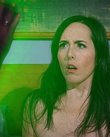 A Nylon Encased lesbian alien appears in Dixie's room in a flash of light, surprising her. She dominates her, magically encases her and fucks her before beaming her back with her to her alien planet.