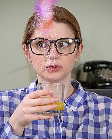 Dixie was excited to find such a hot new roommate for her off campus apartment but it turns out that Bunny is just a boring nerd who spends all of her time with her nose buried in books and never wants to go out and do slutty girlfriend things. But Dixie finds a solution to her problem when she convinces Bunny that she's concerned for her nutrition with all the time she spends studying and brings her a glass of juice. What Bunny doesn't know is that it is magical Dumb Bitch juice that will regress her intellect and turn her into the slutty bimbo roommate that Dixie has always wanted.