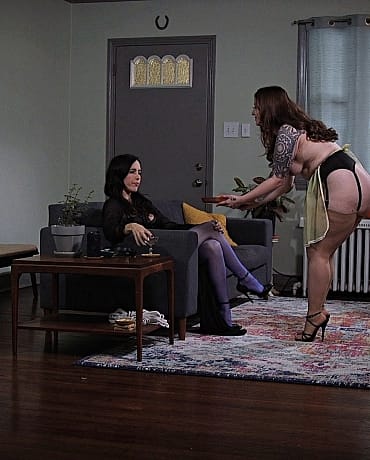 When Dixie's slave Freshie serves her awful tasting cookies, Dixie must humiliate and punish her as she sees fit with rope, tight gags and strap-on fucking.