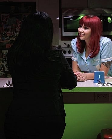 A truck stop waitress at an Inn just off the highway meets a mysterious woman in the middle of the night shift and feels magically compelled to go to her room with her.