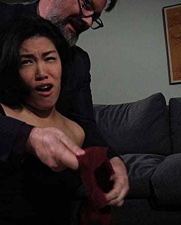 Kim is a college journalism major who writes for the school paper. She’s heard rumors about a professor who gives female students passing grades in exchange for sex and has arranged to have a meeting with him. Once she gets him to confess his scheme, she pulls out a recorder and threatens to reveal him. The Professor will have none of that and after a short scuffle, Kim finds herself hogtied and gagged with her own panties.