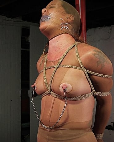 Dixie comes over to Fayth’s house to complain about Fayth leaving her curtains open in the night while she’s fucking the random men she brings home from the bar nightly. Fayth tells her if she doesn't like it then maybe Dixie should close her curtains and stop snooping. Dixie decides she's going to hang curtains for Fayth but first she's going to have a little nylon encasement bondage fun to punish the exhibitionist slut.