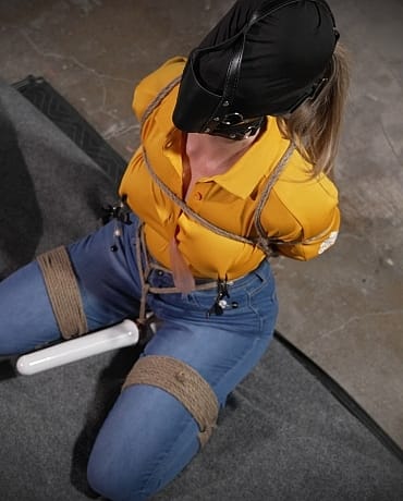 Claire has been snooping around where she wasn't supposed to be and now she's found herself tightly tied up, gagged multiple times, vibed and struggling at the hands of her captors.