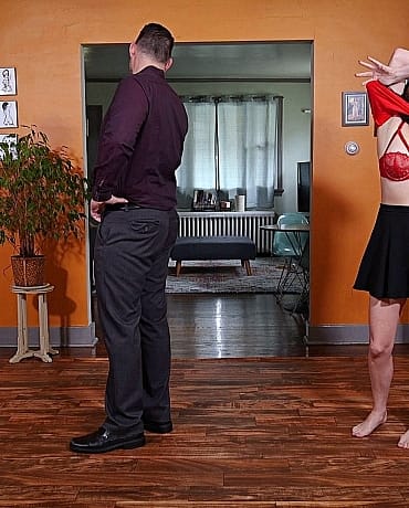 The Property Manager is in for a huge surprise when his prospective tenant starts taking off her clothes while he shows her the house. Turns out she's a nudist and an exhibitionist who just wants to make sure she feels comfortable in the place. His embarrassment is soon replaced with disbelief, however, when she nonchalantly pees on the floor.
