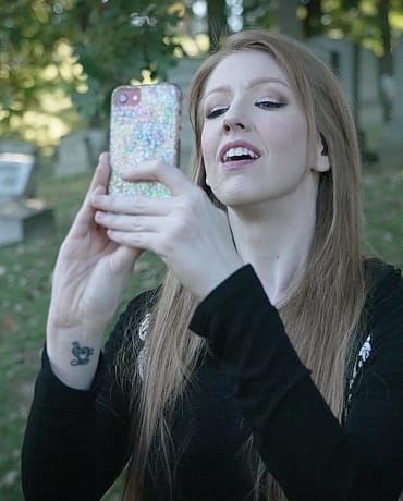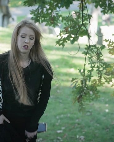 Sonia is enjoying an autumn walk in the cemetery. She takes a break by an old mausoleum to snap some selfies when she's started by a mysterious woman who seems to appear out of nowhere. The next thing Sonia knows she's bound in the vault and the mysterious woman is having her way with her.